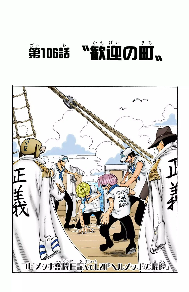 Helmeppo swims his way back to the Marine ship and is pulled aboard in the company of several recruits—including a worried Koby.